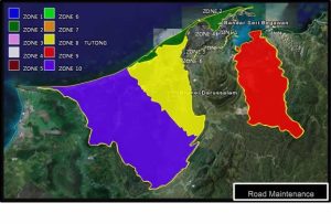 There are 10 Zone identified in the entire four district in the country The Length of Road Under Each Zone